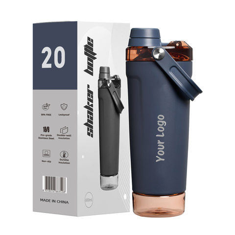 Stainless Steel Coffee Mug 20oz Water Bottle Double Wall Insulated Tumbler New Protein Shaker Bottle with 3oz Storage Tier